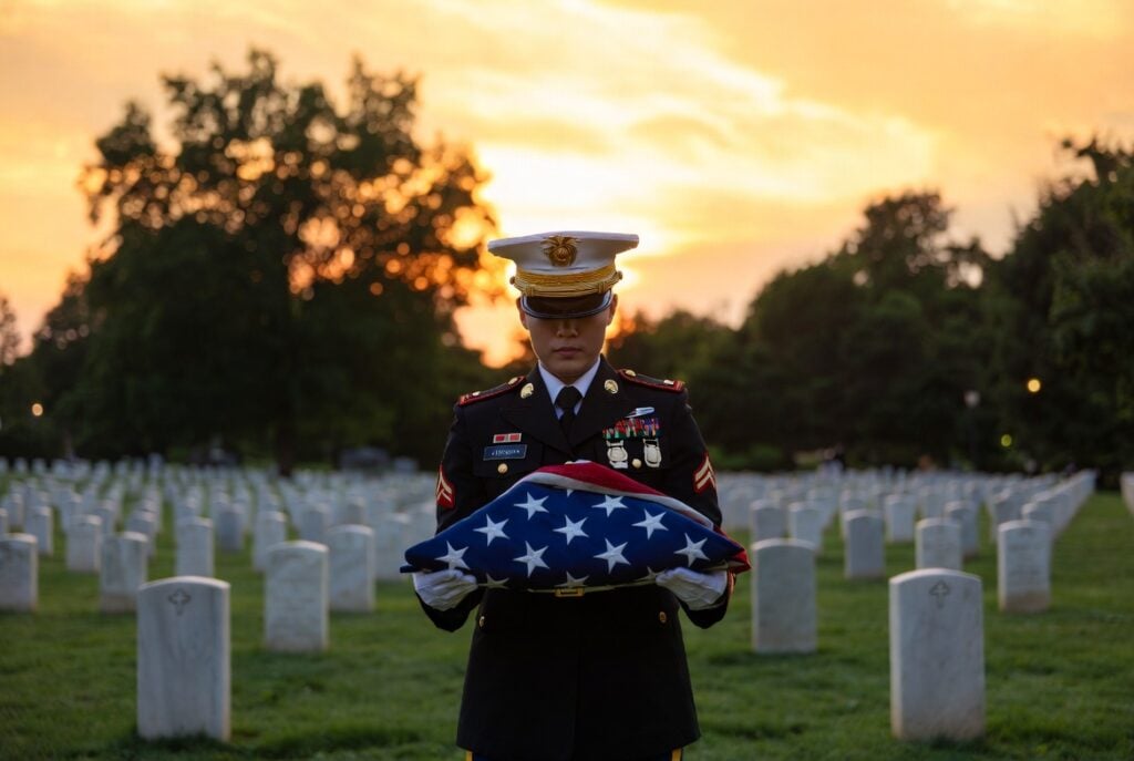 Sarah stood at graveside in her dress blues, the uniform she hadn’t worn since retirement, accepting the folded flag with steady hands. She didn’t cry. Not during the service. Marines didn’t cry in public. But afterwards, standing alone at the grave as the sun set over the white headstones, she let the tears come. Not tears of regret or anger. Tears of gratitude for the time they’d had, for the lessons he’d taught, for the man he’d been.
